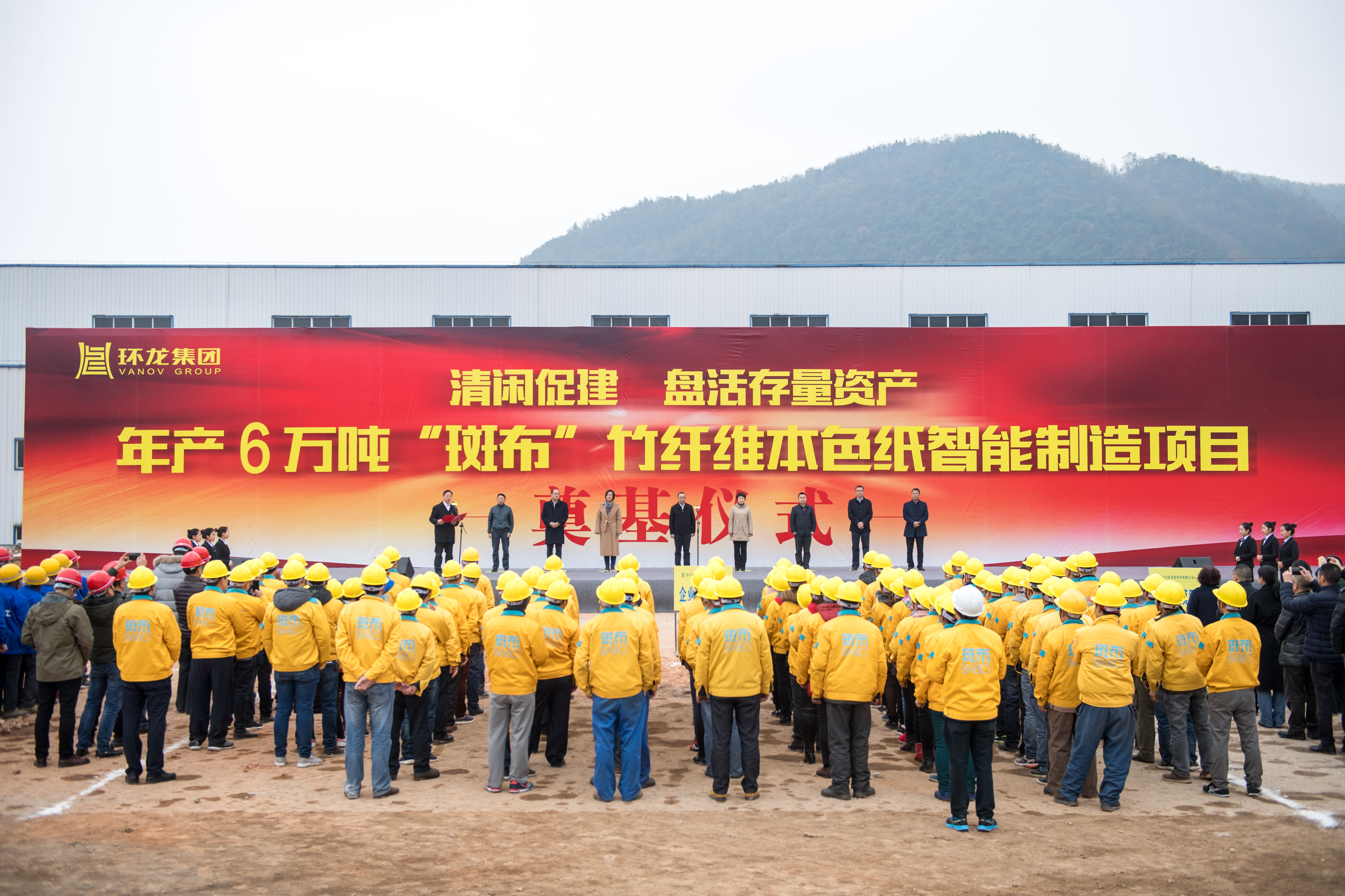 最后,羅宗志副市長(zhǎng)宣布年產(chǎn)6萬(wàn)噸“斑布”竹纖維生活用紙智能制造項(xiàng)目正式開(kāi)工!鳴炮示意,機(jī)器轟鳴,各位領(lǐng)導(dǎo)們?cè)趨⒓拥旎嗤羶x式后合影留念。